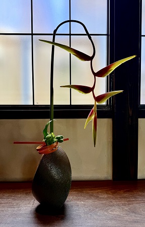 <ハンギングヘリコニア・タケシマユリ・タニワタリ・着色割り竹>