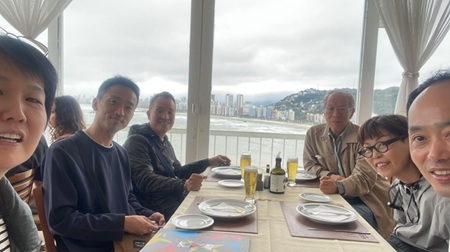 昼食はサントス湾が見渡せるレストランで。あいにくの曇り空であったが、長時間車移動の準備はできた。